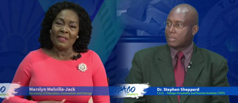 DEIE Secretary Marslyn Melville-Jack and THTI CEO Dr. Stephen Sheppard during Tobago Matters, Episode 4 on August 14th, 2021. The Tobago Matters series enables residents