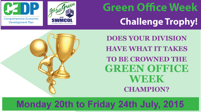 The Comprehensive Economic Development Plan (CEDP) Secretariat, is issuing a friendly challenge to all Divisions of the Tobago House of Assembly (THA) to join us in celebrating “Green Office Week” and is awarding a challenge trophy to the winning Division.