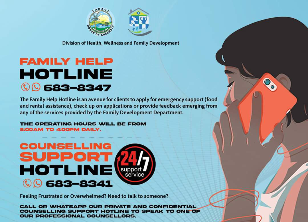 “When persons feel overwhelmed emotionally and want someone not familiar with them to speak to in a confidential manner, calling the Counselling Support Hotline is a great choice. Whatsapp messaging is also an option of accessing the counseling service,” said Tyneille Graham of the Division’s Children and Family Unit. The messaging option was put in place for persons not in a position to, or who were not comfortable talking.