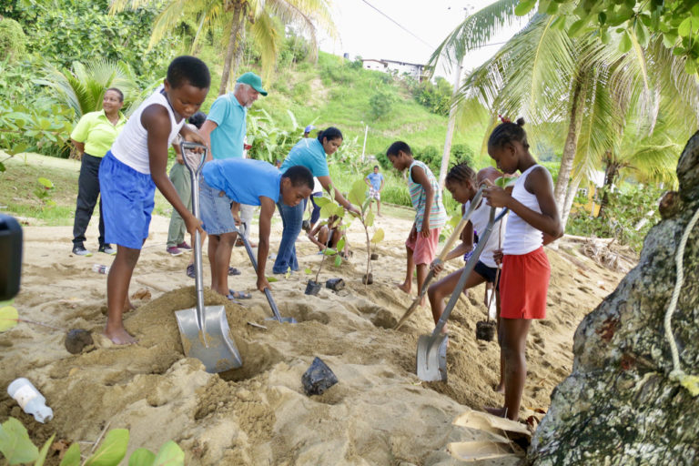 Trees such as almond and coconut help protect communities during adverse weather conditions. On November 21st, 167 trees were planted by Environment Secretary Kwesi Des Vignes, residents of Parlatuvier, representatives from Environmental Research Institute Charlotteville (ERIC) and the Tobago Tourism Agency Limited (TTAL). The Division of Infrastructure, Quarries and the